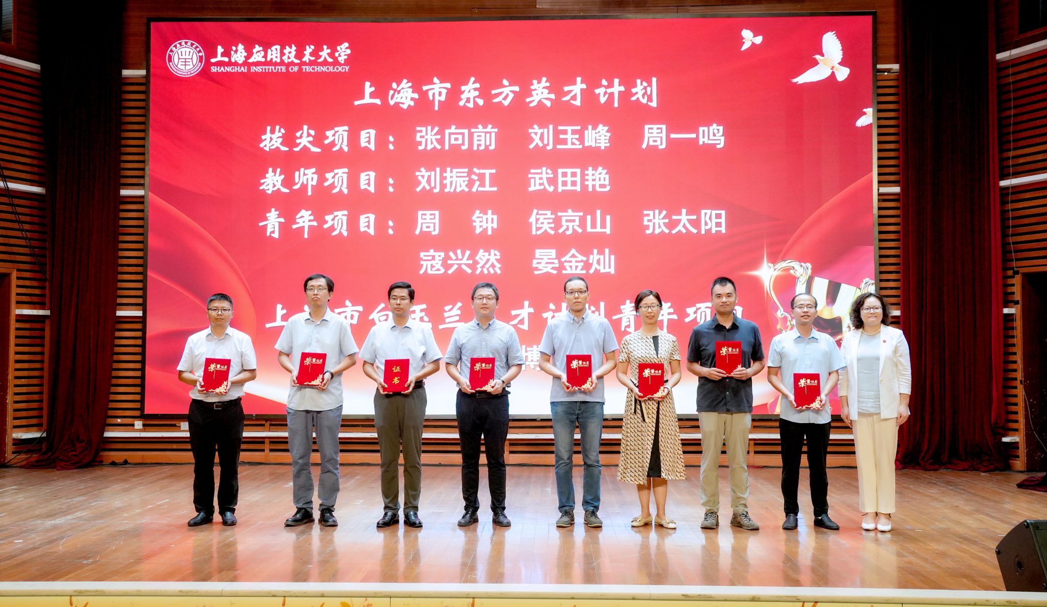 上海市东方英才计划教师项目、上海市东方英才计划青年项目、上海市白玉兰人才计划青年项目获得教师颁发证书